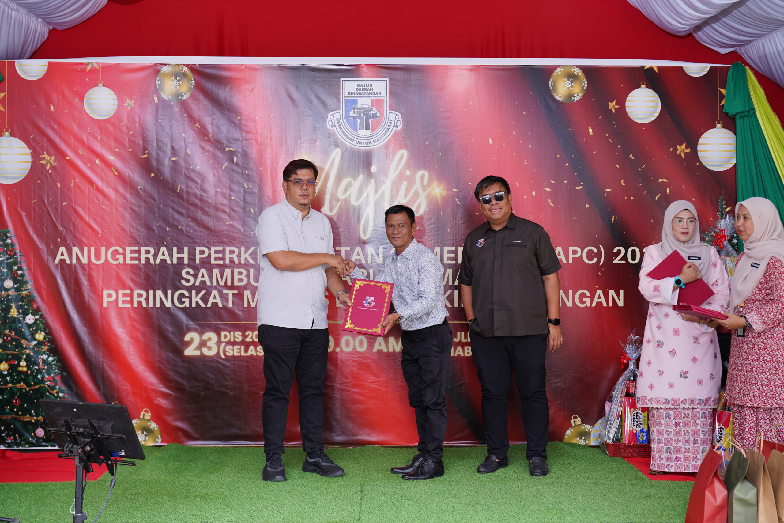 Majlis Anugerah Perkhidmatan Cemerlang 2024 (APC) & Sambutan Hari Krismas 2025 Peringkat Majlis Daerah Kinabatangan telah diadakan sebagai tanda penghargaan kepada warga kerja yang menunjukkan prestasi cemerlang, dedikasi serta komitmen tinggi dalam melaksanakan tugas dan tanggungjawab yang diamanahkan. Majlis ini turut menjadi platform untuk mengiktiraf sumbangan berterusan kakitangan dalam memperkukuh penyampaian perkhidmatan kepada masyarakat setempat.
