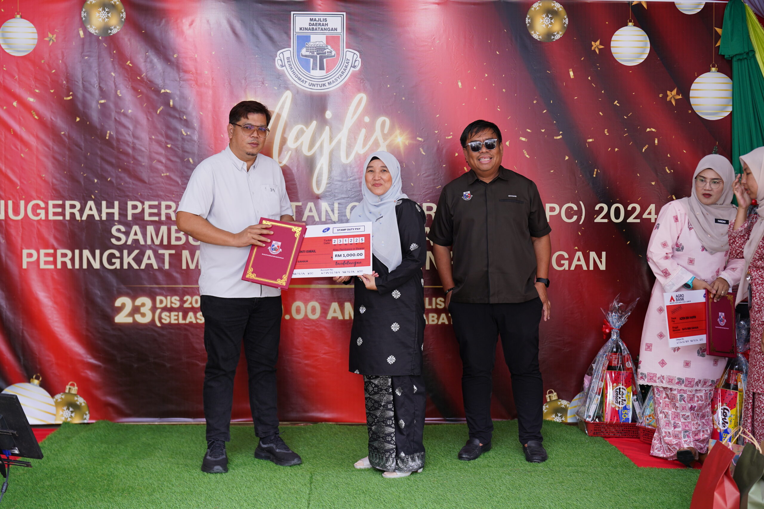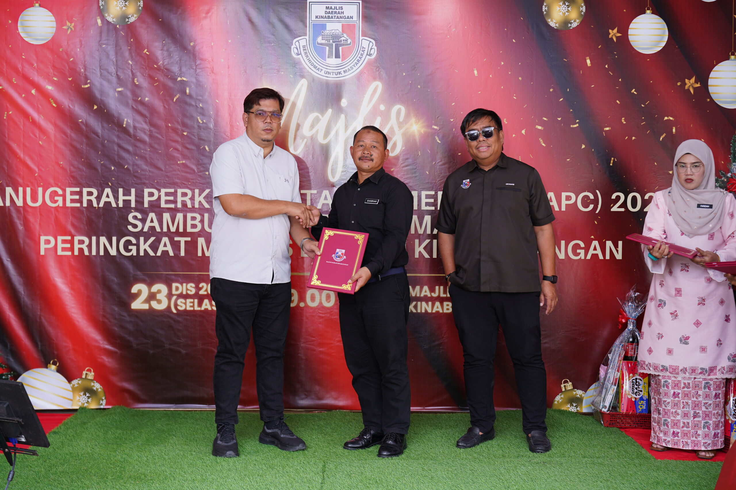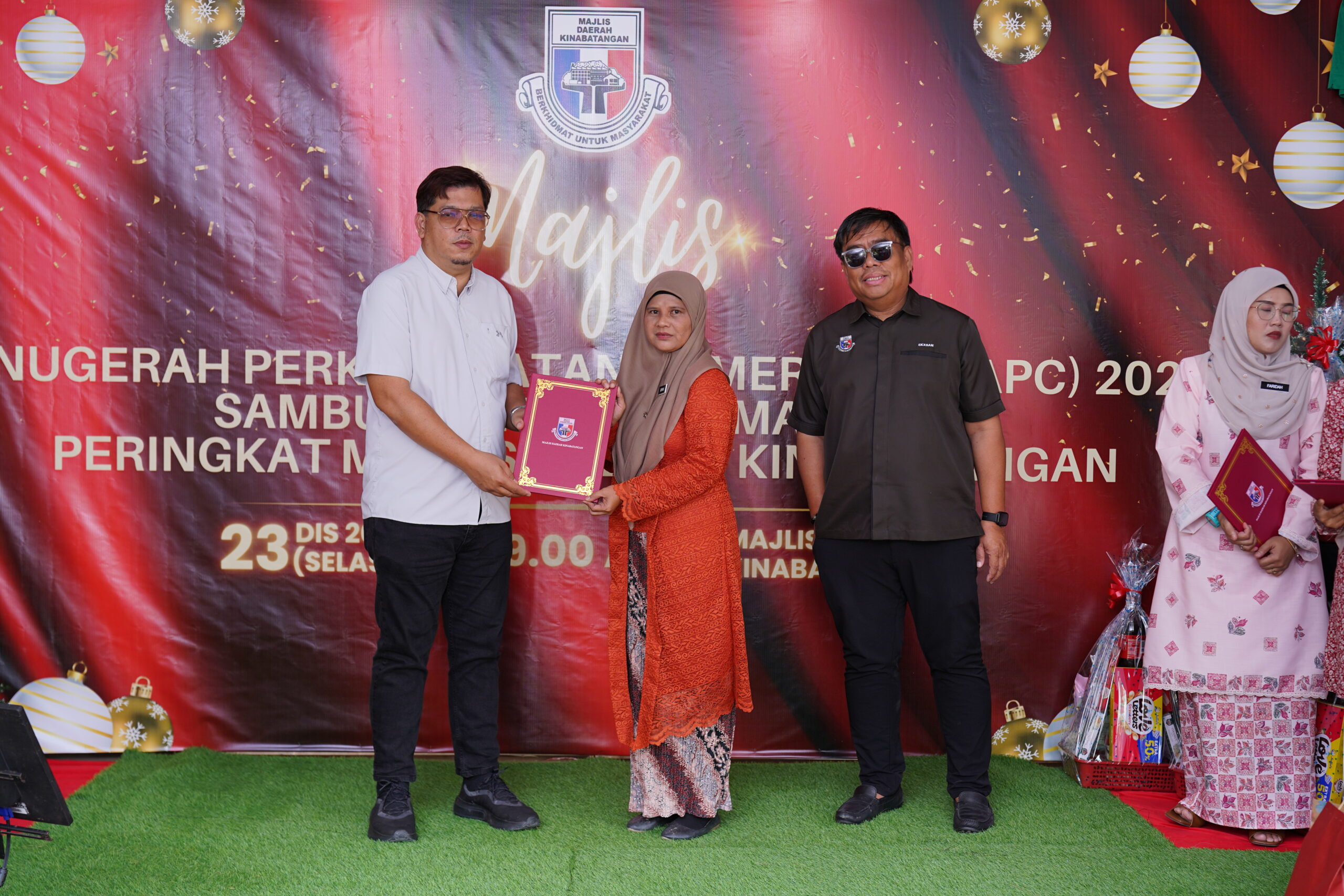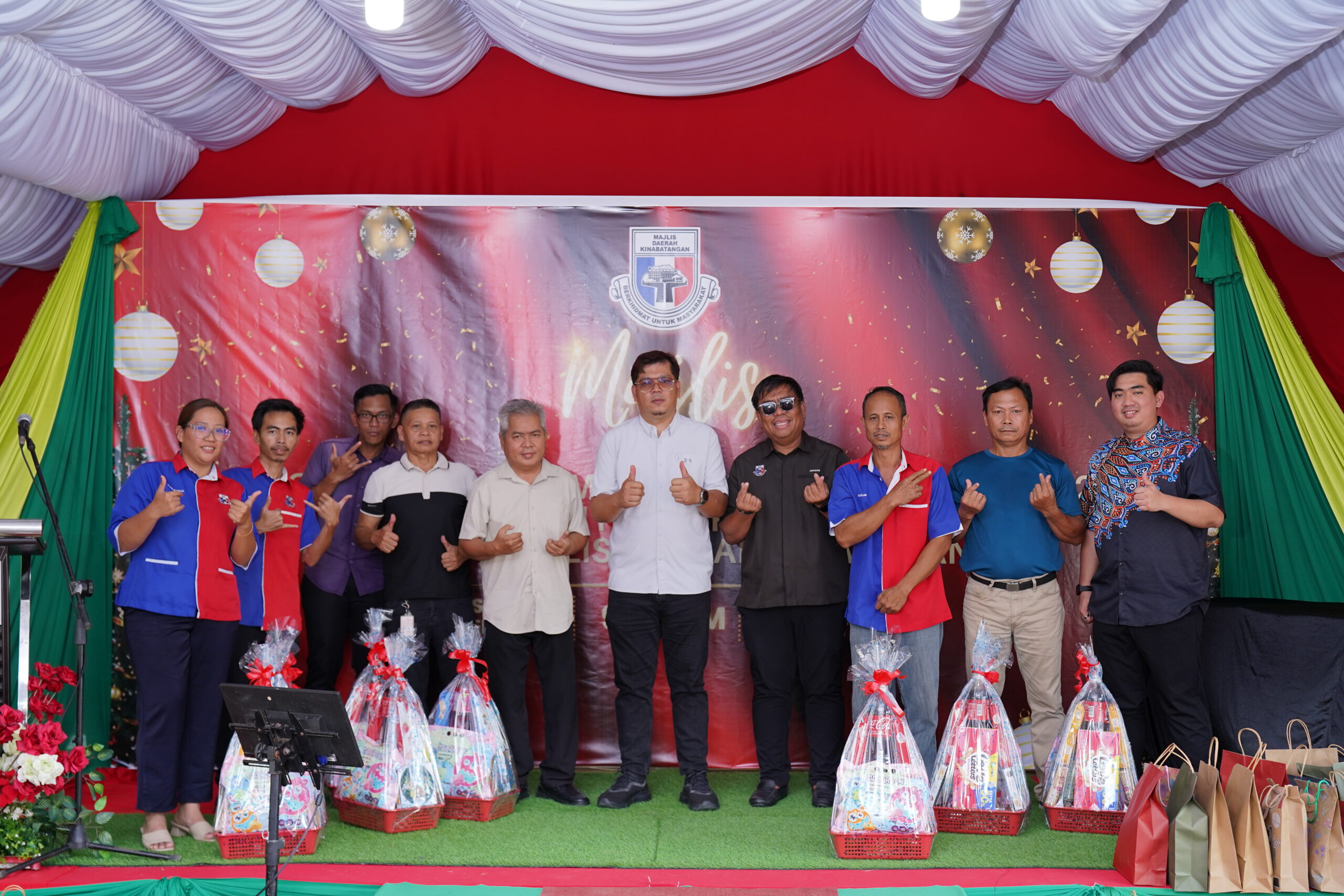 Acara ini turut diserikan dengan pemberian hamper kepada kakitangan yang merayakan Hari Krismas serta hadiah kepada semua kakitangan Majlis Daerah Kinabatangan.