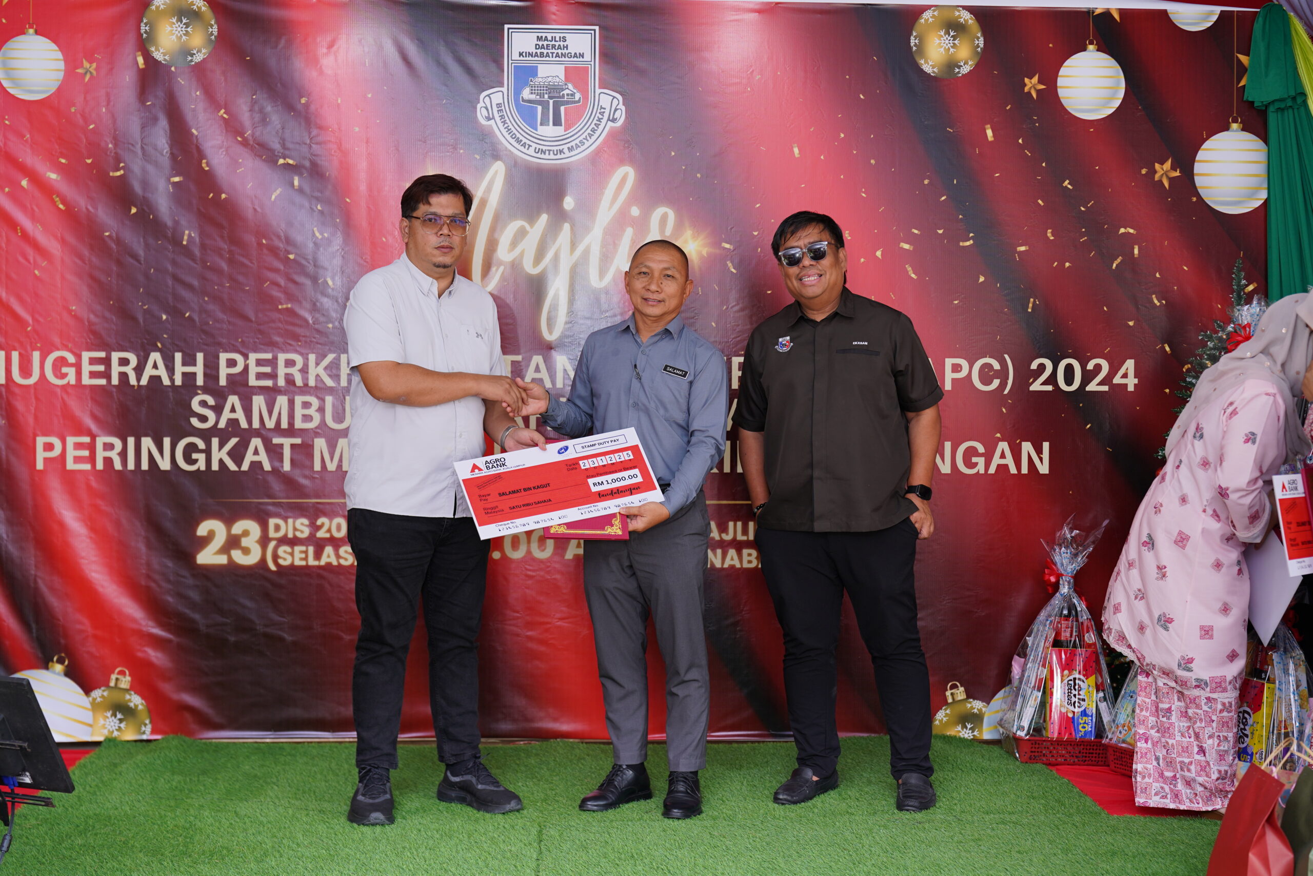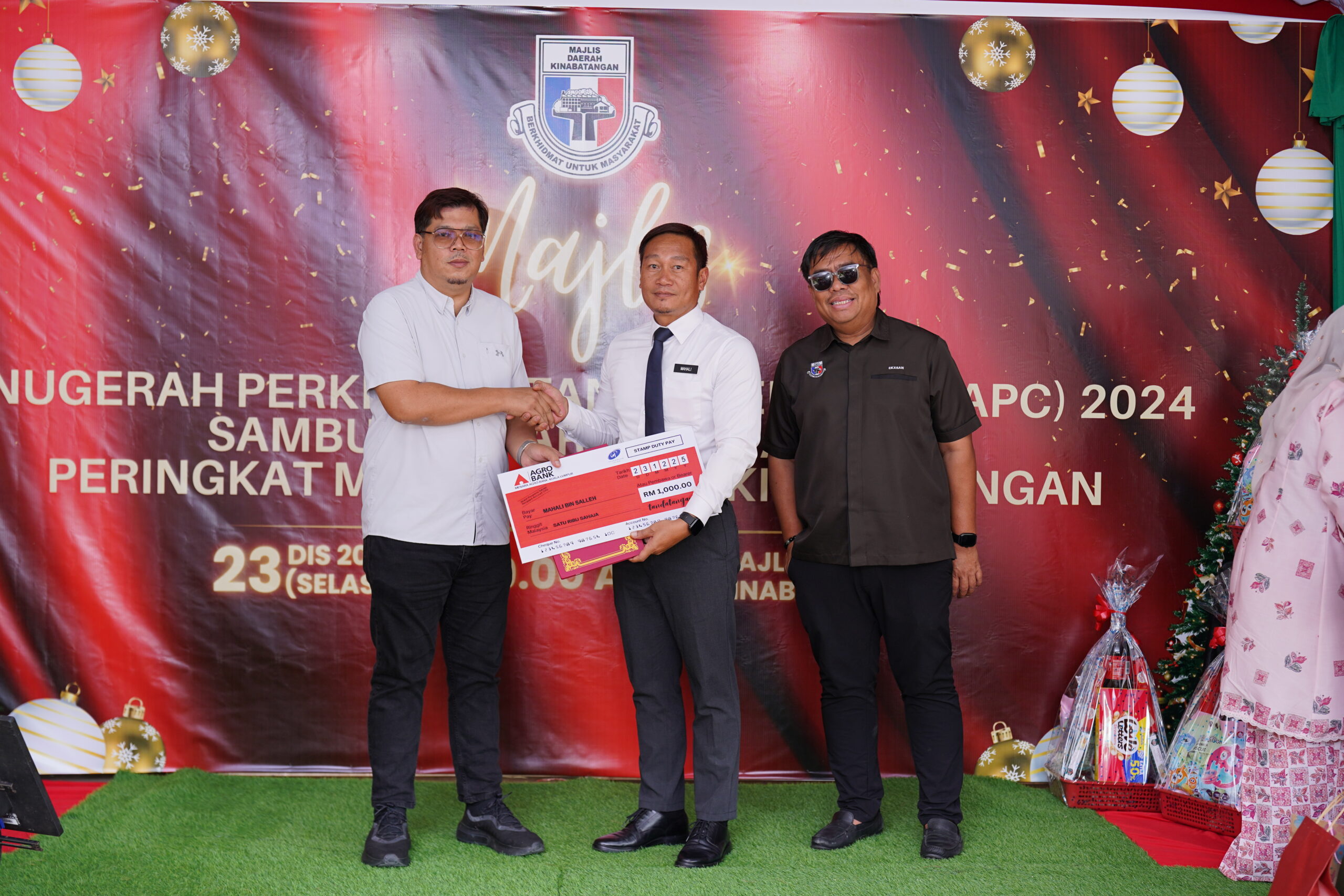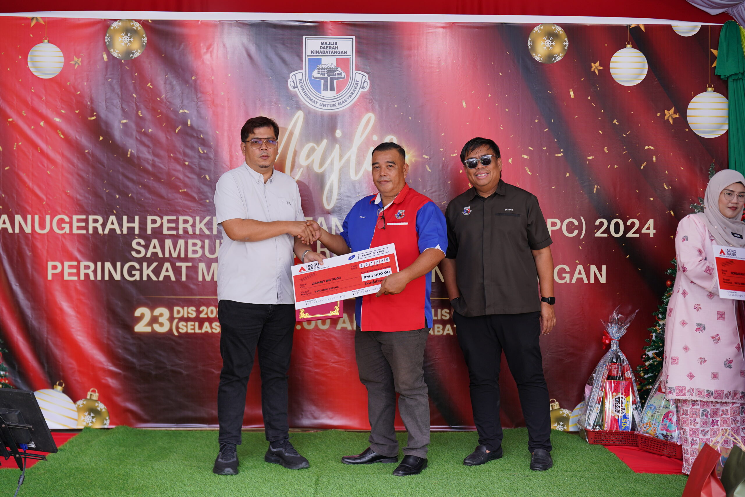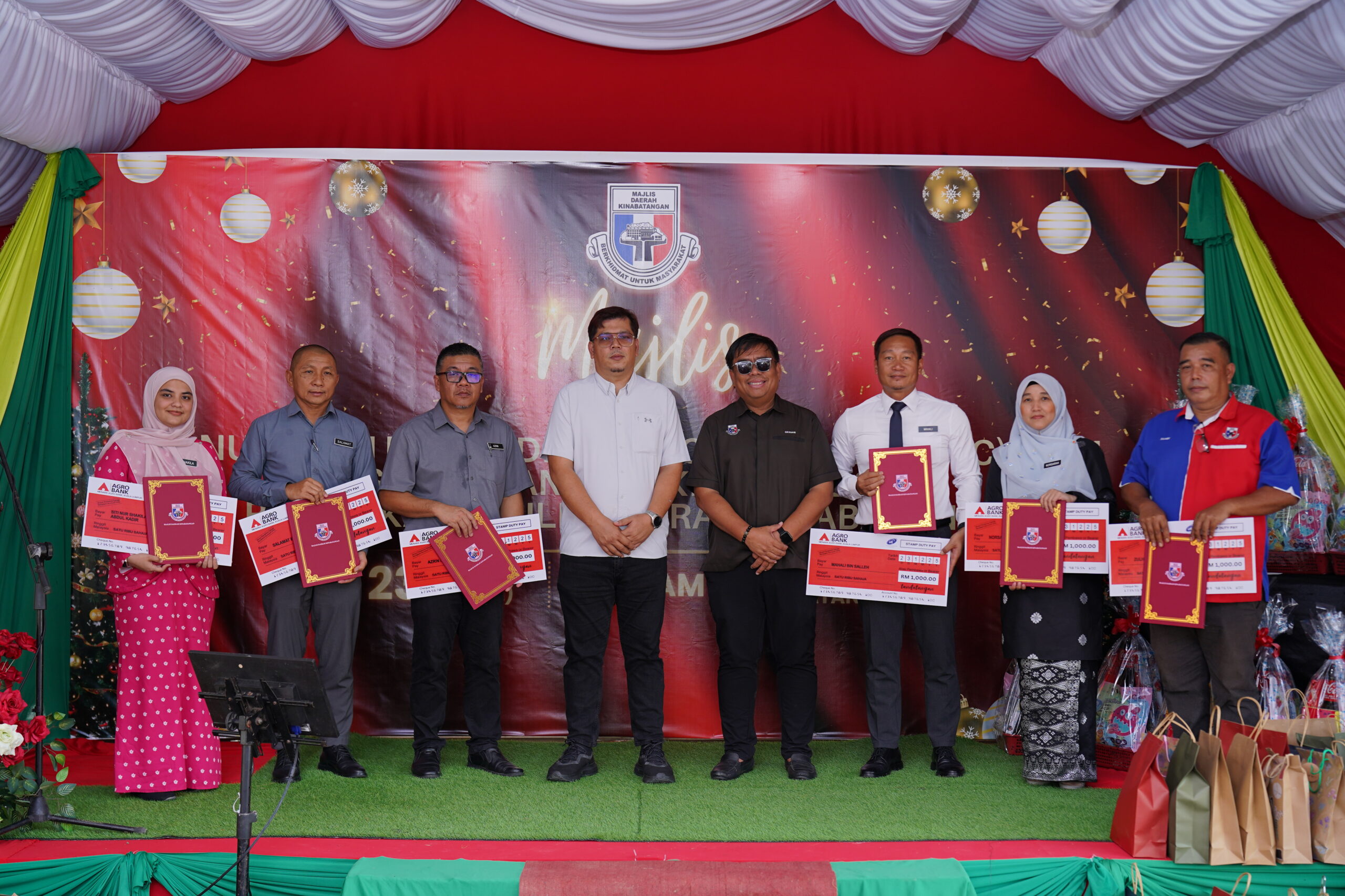 Acara ini turut diserikan dengan pemberian hamper kepada kakitangan yang merayakan Hari Krismas serta hadiah kepada semua kakitangan Majlis Daerah Kinabatangan.